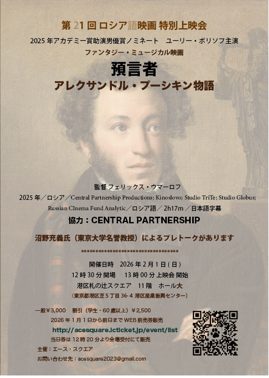 ロシア映画特別上映会 〈預言者. アレクサンドル・プーシキン物語〉